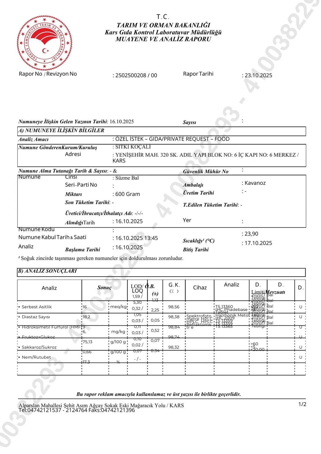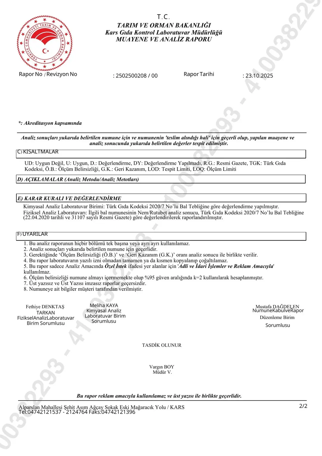 DOĞAL & KATKISIZ SOĞUK ZİNCİR İLE GÜVENLİ TESLİMAT 🍯 Coğrafi İşaretli Kars Balı – 850 gr Kafkas Arılarından, Yüksek Yaylaların Gerçek Balı Kars’ın yüksek rakımlı, zengin bitki örtüsüne sahip yaylalarında, Kafkas ırkı arılar tarafından üretilen bu bal; hem doğallığı hem de kalitesiyle öne çıkar. Coğrafi işaret tescilli olması, bu balın yalnızca Kars bölgesine ait özel üretim koşullarıyla elde edildiğini belgelemektedir. Kars Arıcılar Birliği denetiminde analiz edilip, dolum tesisinde hijyenik koşullarda kavanozlanır. Yoğun aroması, güçlü kıvamı ve yüksek besin değeriyle sofralarda doğal tatlılık arayanların ilk tercihi. ✨ Öne Çıkan Özellikler: ✅ Coğrafi işaret tescilli – Kars yöresine özgü ✅ Yüksek rakım – zengin bitki florası ✅ Kafkas arılarından doğal üretim ✅ Katkı maddesi, rafine şeker içermez ✅ 850 gr cam kavanoz – aile boyu kullanım ✅ Kahvaltılarda, sütle veya yoğurtla ideal 📦 Ambalaj ve Gönderim: – Cam kavanozda hijyenik ve dayanıklı ambalaj 🚚 Türkiye’nin her yerine güvenli ve hızlı kargo